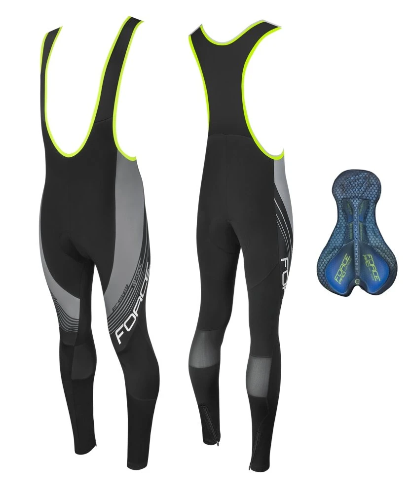 Long cycling pants with lace and gel pad, without thermal insulation.