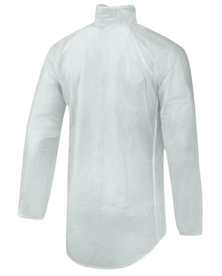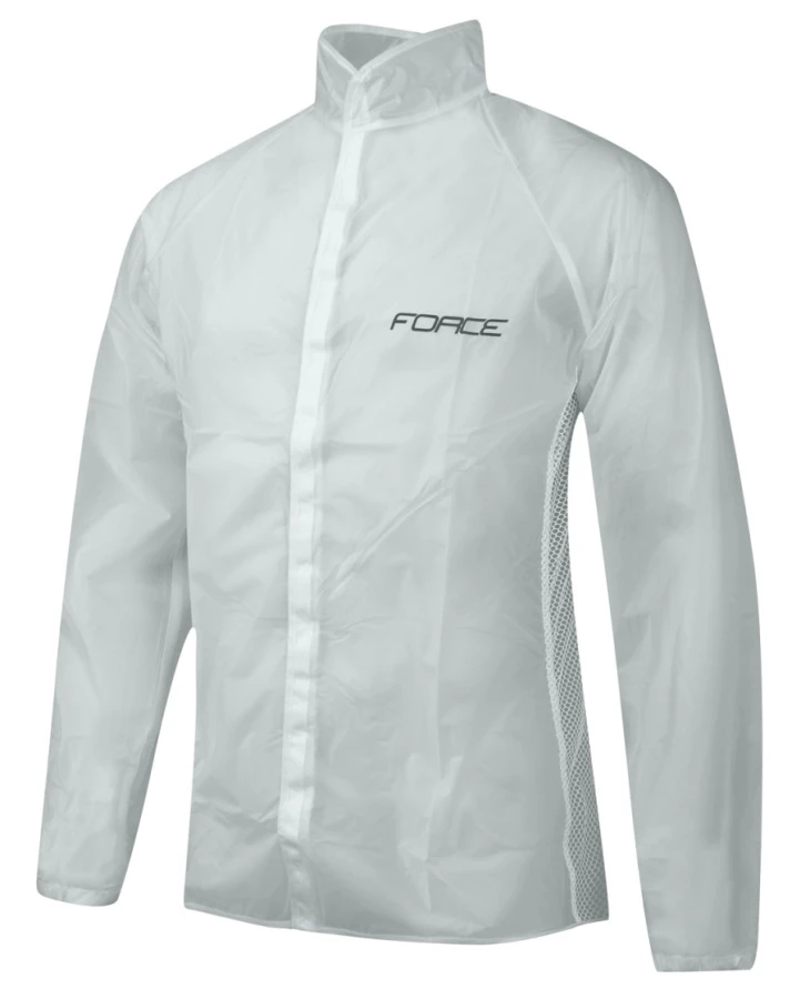 Collapsible cycling raincoat made of PVC.