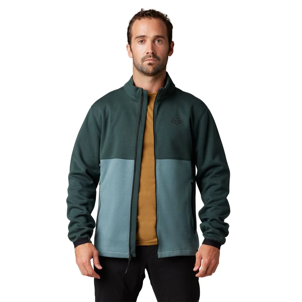 Fox insulated cycling sweatshirt with a higher cut collar and front zip fastening.