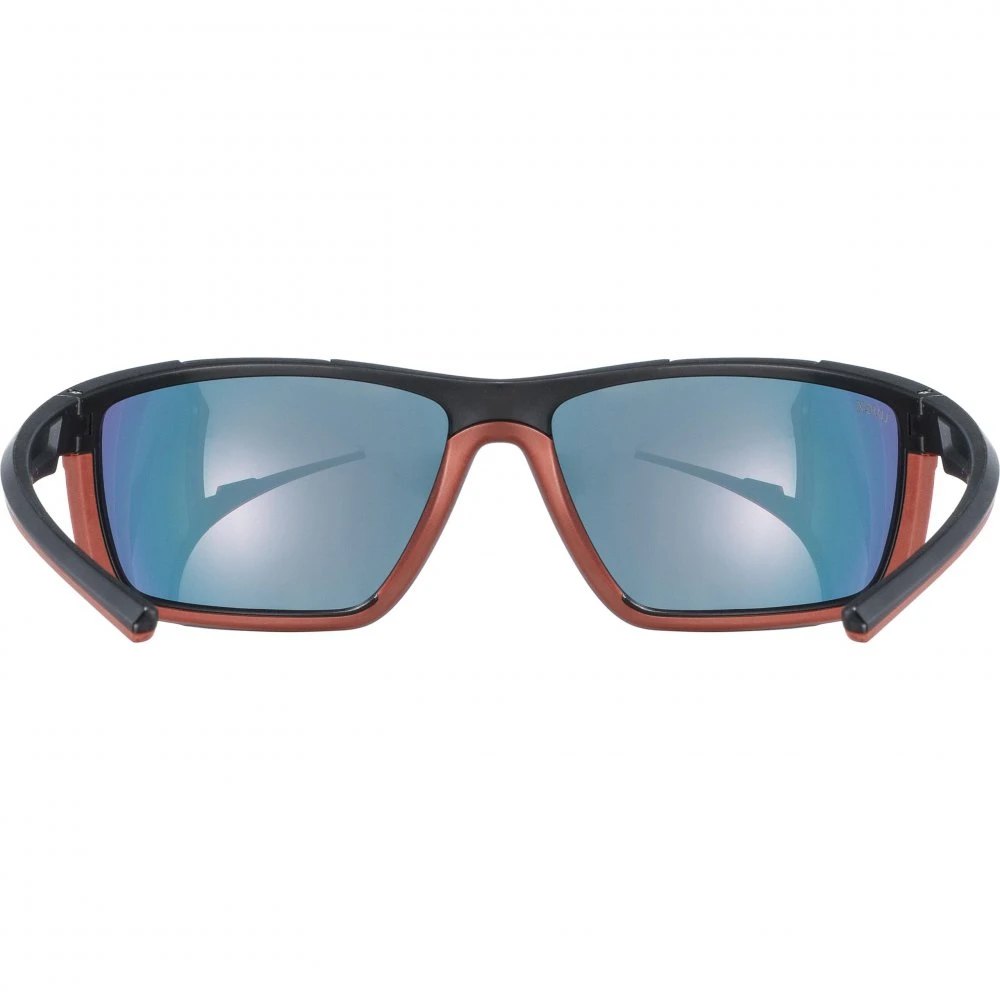 Sports glasses with a full-frame construction and mirror lenses, especially suitable for round and oval faces.